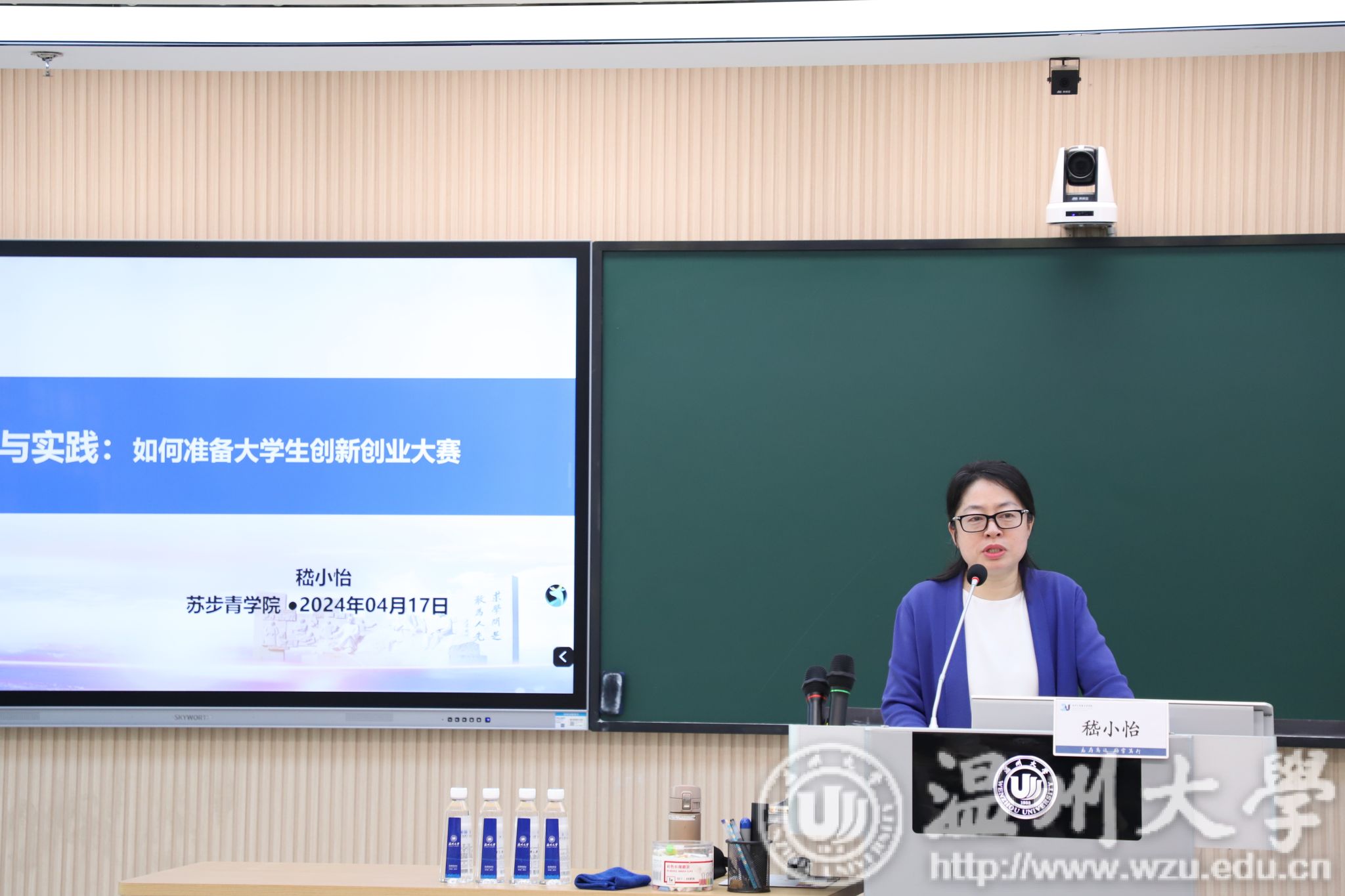 研究员、瓯江特聘教授嵇小怡主讲。本次讲座主题为《规划与实践:如何准备大学生创新创业大赛》,旨在帮助同学们了解绍赛道规则和准备策略,为参赛夯实基础。