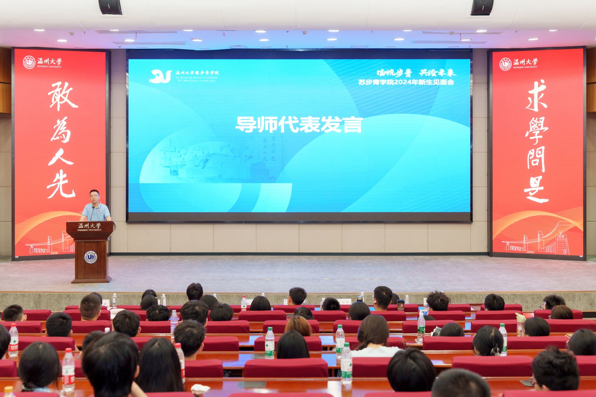见面会在雄壮的国歌声中拉开序幕,全体师生起立,奏唱《义勇军进行曲》。铿锵激昂的国歌旋律中,24级步青学子们以坚毅自信的面容,展现出他们立志奋斗、科研报国的决心。这一刻,梦想在礼堂上空翱翔,青春的华章正式奏响。