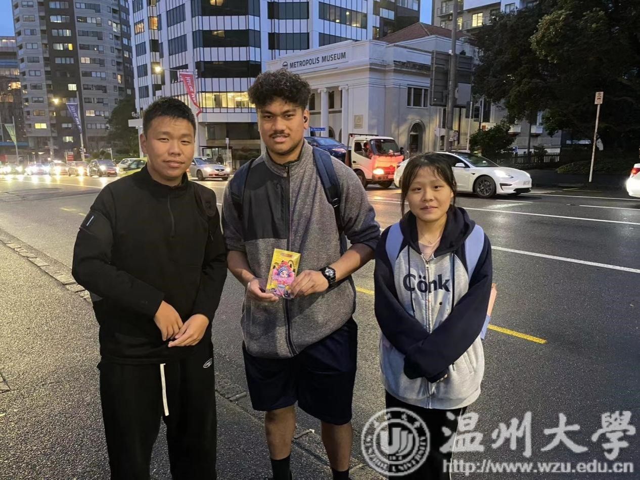 实验班实践队学生在新西兰奥克兰市的皇后街举行中华传统文化交流活动,通过宣传京剧这一独特的艺术形式,向当地民众展现中华传统文化的丰富性和独特性,生动讲述中国故事。