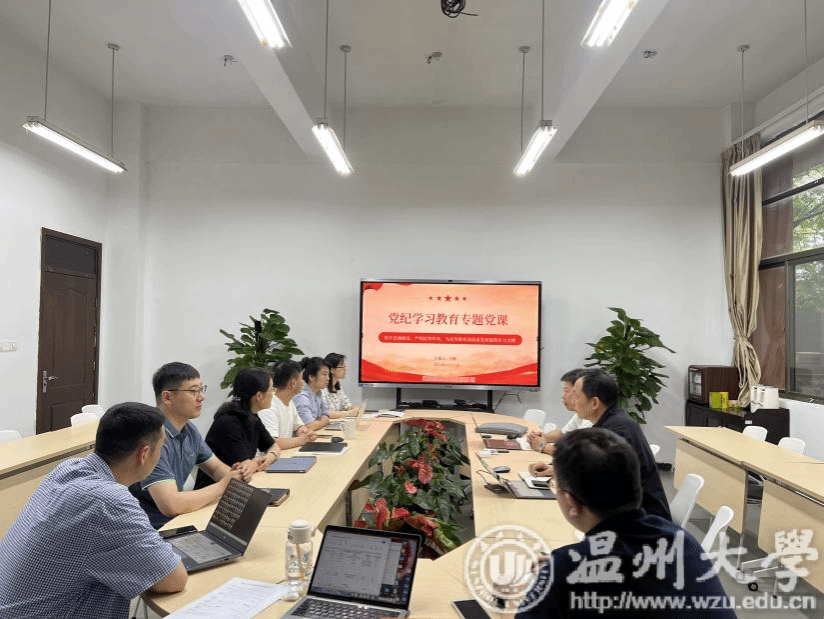 在瓯4-109党员之家开展党纪学习教育专题党课,教工党支部书记王彬作题为“筑牢忠诚根基、严明纪律作风,为高等教育高质量发展提供有力支撑”的报告,全体教职工党员参加。