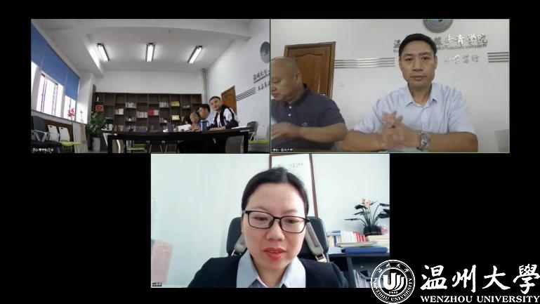 外国语学院大外部副主任王素娟、教师李雪燕、杨志玲出席会议。会上,陈旭英从课程概述、教学模式、教学成效三方面展开介绍,教学模式上,集贤学院第一至第三学期为学生开设通用学术英语学习,第四学期开始将学生按照专业属性分为新工科、新农科、新文科展开学术英语写作,旨在提升学生专业学术方面的英语水平。交流互动环节,双方就课程用教材、教学内容、第二课堂等话题进行深入交流。