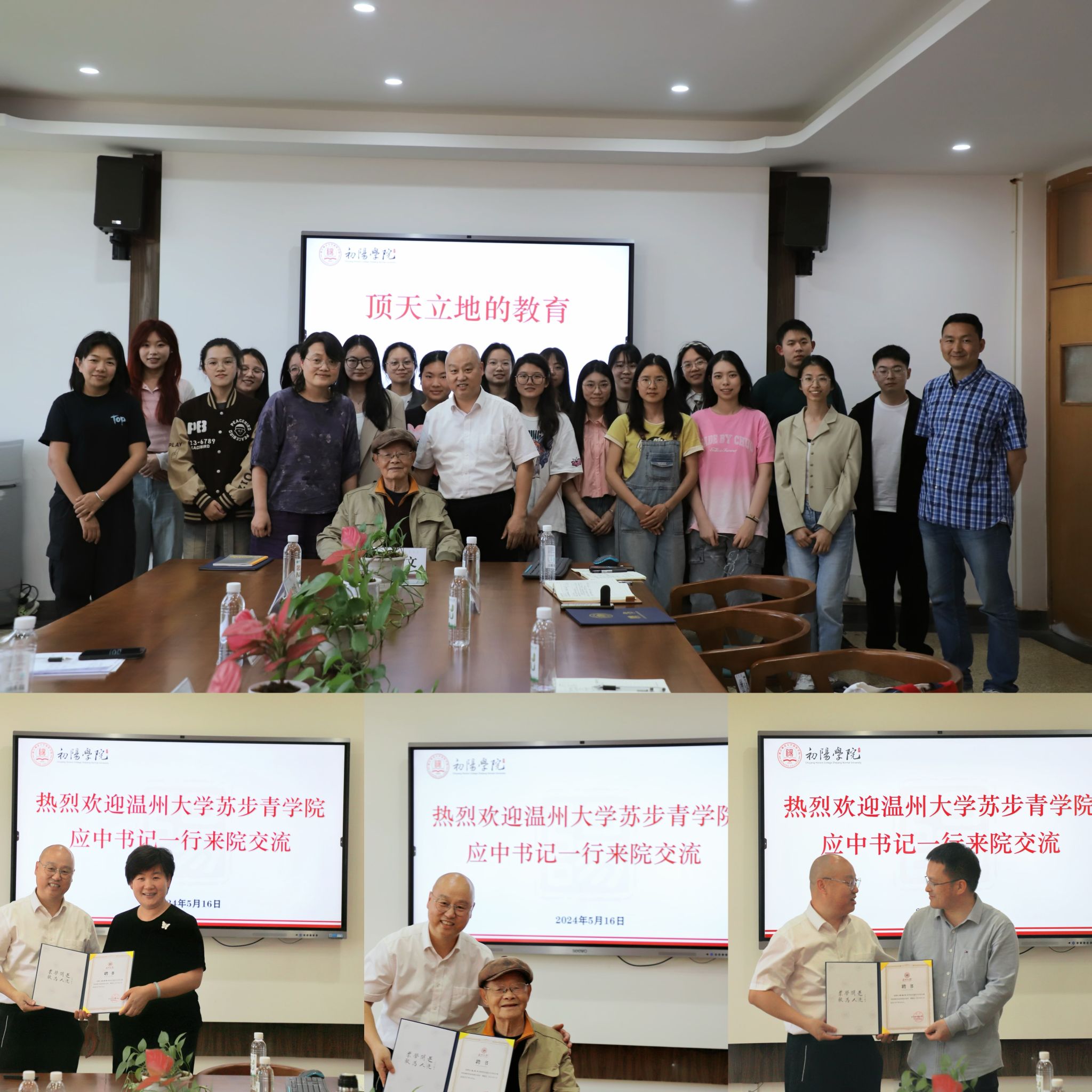 16日下午,在浙江师范大学初阳学院,双方座谈交流,党总支书记周建峰、副院长宋清秀、教育学院课程与教学论硕士点负责人杨继利博士、资深教授、语文教育家王尚文出席。座谈会上,应中代表麻豆在线