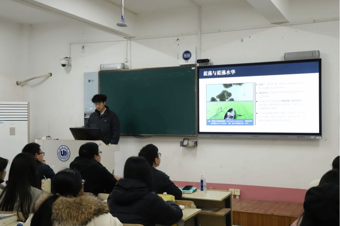 来自 24步青汉语言的邵琰媛同学在汇报中展示了自己对于外国文学的理解。来自2 4步青数学的王子铭同学,他以苏步青数学家精神为切入点,着重展示了数学分析中的一题多解,并且对周期函数的探索方法进行推广应用,体现了数学专业严谨钻研的精神气质。来自 24步青化学的柴苏航同学则着眼于有机合成化学这一课题。他在汇报中提到,有机化学的研究对象是碳化合物,是与生命有关的化学。来自24步青生物的蒋建豪围绕蓝藻水华与微囊藻毒素的生物学与生态学功能进行阐述。